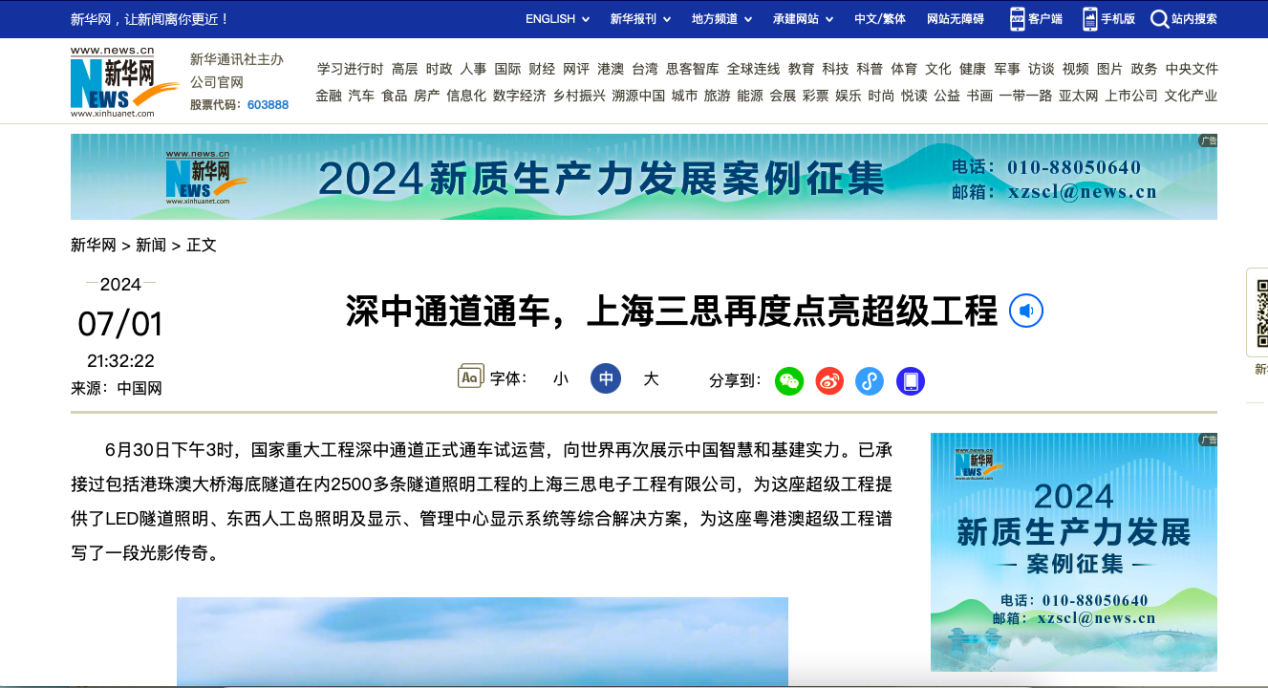 6月30日下午3時(shí),國(guó)家重大工程深中通道正式通車(chē)試運(yùn)營(yíng),向世界再次展示中國(guó)智慧和基建實(shí)力。已承接過(guò)包括港珠澳大橋海底隧道在內(nèi)2500多條隧道照明工程的上海三思電子工程有限公司,為這座超級(jí)工程提供了LED隧道照明、東西人工島照明及顯示、管理中心顯示系統(tǒng)等綜合解決方案,為這座粵港澳超級(jí)工譜寫(xiě)了一段光影傳奇。
