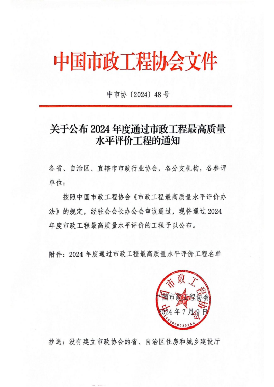 市政工程最高質(zhì)量水平評(píng)價(jià)(原中國(guó)市政金杯示范工程)由中國(guó)市政工程協(xié)會(huì)組織實(shí)施,是市政工程行業(yè)在工程質(zhì)量方面最高的質(zhì)量水平評(píng)價(jià),代表市政工程行業(yè)同時(shí)期國(guó)內(nèi)先進(jìn)水平。