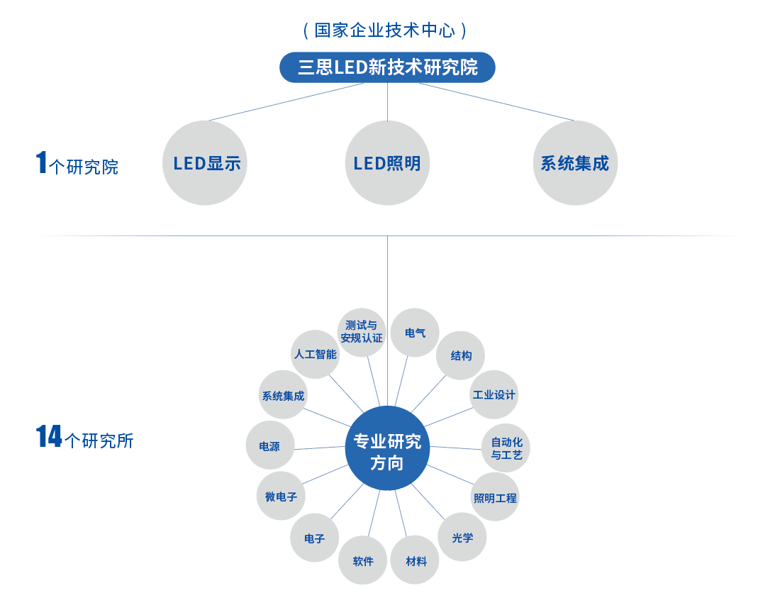 2020年初,三思LED新技術(shù)研究院被國家發(fā)展改革委、科技部、財(cái)政部、海關(guān)總署、稅務(wù)總局聯(lián)合認(rèn)定為“國家企業(yè)技術(shù)中心”,彰顯了三思在LED科技創(chuàng)新和技術(shù)研發(fā)領(lǐng)域的顯著優(yōu)勢。