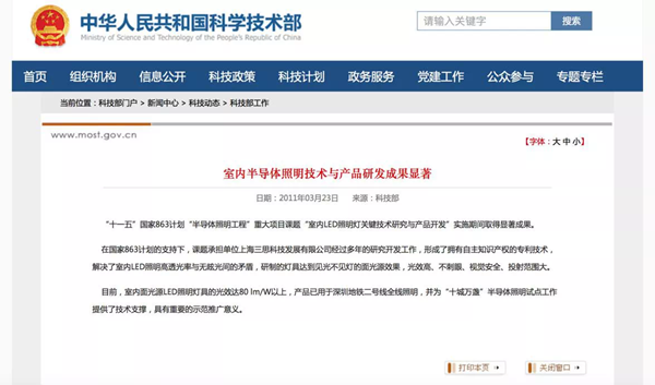 尤其是應(yīng)用于教室照明燈具的三思反射式發(fā)光技術(shù),獲得國家科技部“十一五”國家863計(jì)劃“半導(dǎo)體照明工程”重大項(xiàng)目課題成果,形成了擁有自主知識產(chǎn)權(quán)的專利技術(shù)(專利編號:CN201922415403.3),實(shí)施期間取得顯著成果。