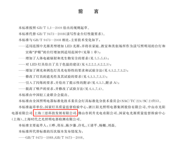 該標(biāo)準(zhǔn)由中國輕工業(yè)聯(lián)合會提出,全國照明電器標(biāo)準(zhǔn)化技術(shù)委員會燈具分技術(shù)委員會(SAC/TC224/SC2))歸口管理。上海三思電子工程有限公司作為該標(biāo)準(zhǔn)起草單位之一,相關(guān)提議與解決方案被委員會認(rèn)同并采納,為在全國推動健康教室照明的普及盡自己最大的努力。