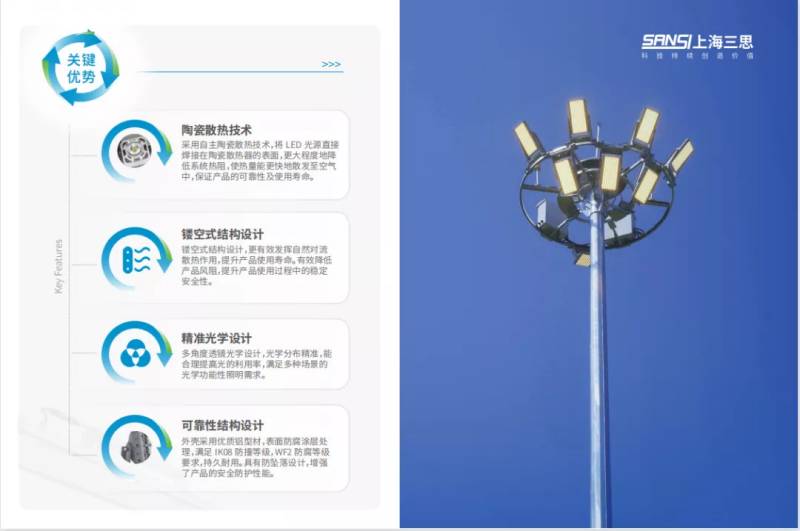 三思LED陶瓷散熱高桿燈關鍵優(yōu)勢
