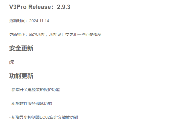 V3Pro?Release:2.9.3更新時間:2024.11.14更新描述:新增功能,功能設計變更和一些問題修復