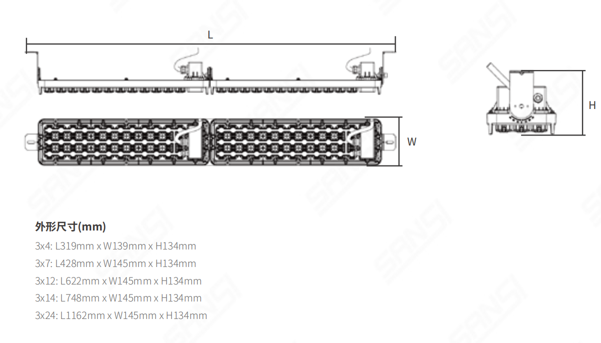 不調(diào)光/RS485/PWM/0~10V/0~5V/PLC | 鋁本色RAL9006 | L70 125000小時(環(huán)境溫度在25℃)* | -40℃~+55℃ |